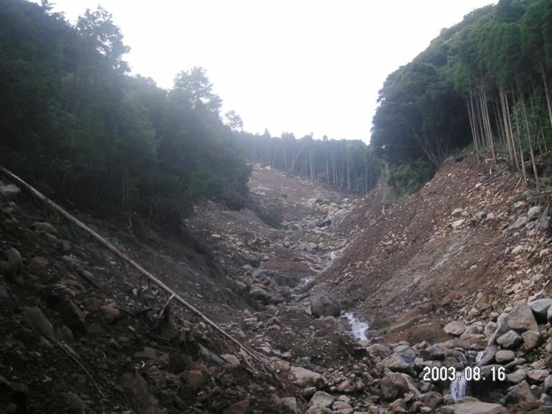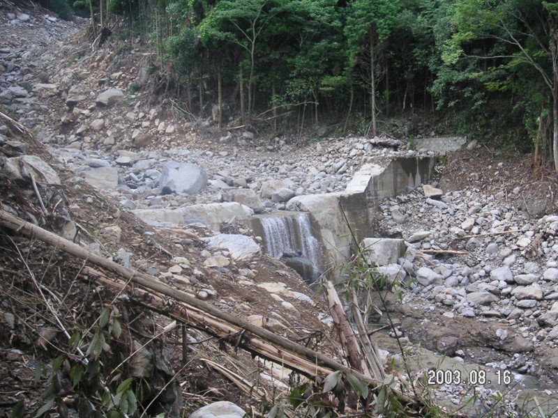 宝河内地区では、3基の治山ダム(砂防ダムと管轄が違うが目的や構造はほとんど同じ)が無残に崩れており、今回のような大規模な土石流に何の役にも立っていないという衝撃的場面もしっかり目に焼きついた。