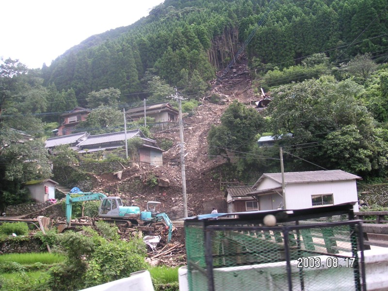7月19日〜20日にかけて九州南西部を記録的な集中豪雨が襲い、水俣市で土石流による死者19名・・・。